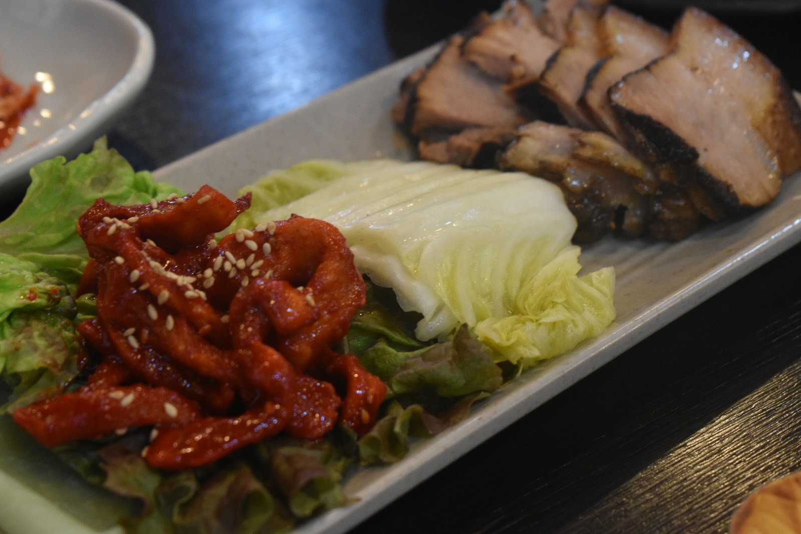 肉厚。一緒についているキムチも美味しい。